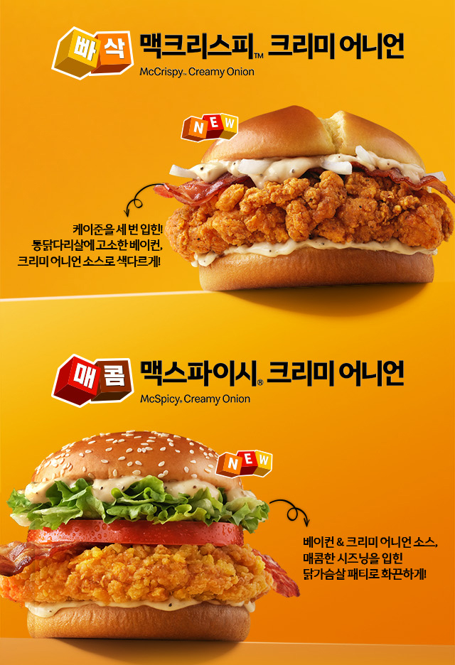 맥크리스피 클래식 버거에 크리미어니언 소스를 추가한 것이 맥크리스피 크리미어니언